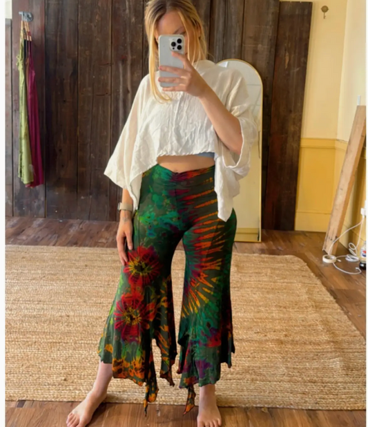 Hippie Boho Fairy Yoga Tie Dye Pants, Hand Dye Stretch Pant